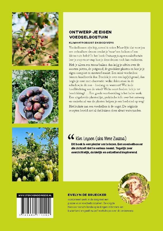 Heb je slechts een terras of balkon, dan krijg je advies over de soorten potten, de potgrond, de geschikte planten en hoe je je eigen compost en meststof maakt. Een mini-voedselbos binnen handbereik dus. Beschik je over een lap(je) grond, dan begin je met observeren: welke delen staan in de schaduw, in de zon – hoelang en wanneer? Wat is de hoofdrichting van de wind? Welke bodemsoort heb je ter beschikking? … Een goede voorbereiding is het halve werk. Een uitgebreide plantenlijst, praktische info over het ontwerp en over het onderhoud van de planten helpen je een heel eind op weg!