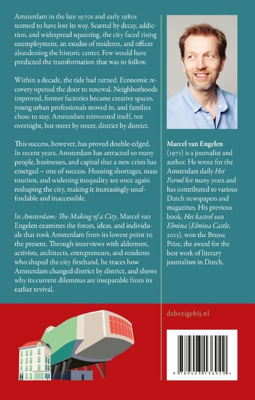 Amsterdam in the late 1970s and early 1980s seemed to have lost its way. Scarred by decay, addiction, and widespread squatting, the city faced rising unemployment, an exodus of residents, and offices abandoning the historic center. Few would have predicted the transformation that was to follow. Within a decade, the tide had turned. Economic recovery opened the door to renewal. Neighborhoods improved, former factories became creative spaces, young urban professionals moved in, and families chose to stay. Amsterdam reinvented itself, not overnight, but street by street, district by district. This success, however, has proved double-edged. In recent years, Amsterdam has attracted so many people, businesses, and capital that a new crisis has emerged – one of success. Housing shortages, mass tourism, and widening inequality are once again reshaping the city, making it increasingly unaffordable and inaccessible. In Amsterdam: The Making of a City, Marcel van Engelen examines the forces, ideas, and individuals that took Amsterdam from its lowest point to the present. Through interviews with aldermen, activists, architects, entrepreneurs, and residents who shaped the city firsthand, he traces how Amsterdam changed district by district, and shows why its current dilemmas are inseparable from its earlier revival.